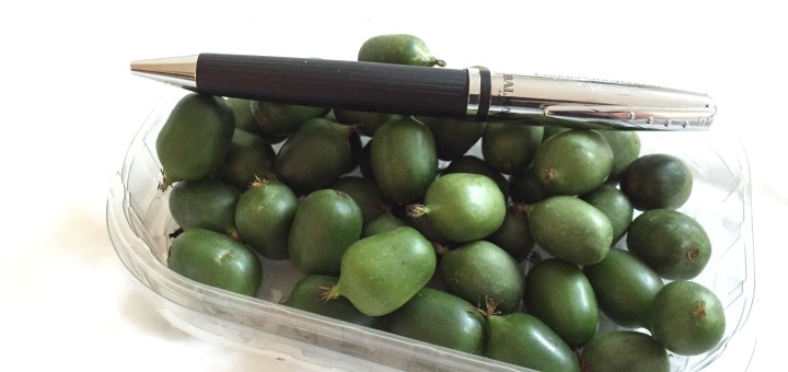 Das hier nennt sich Kiwiberries. Sind im Gewächshaus der Eltern der Freundin eines Arbeitskollegens in den Niederlanden gewachsen.