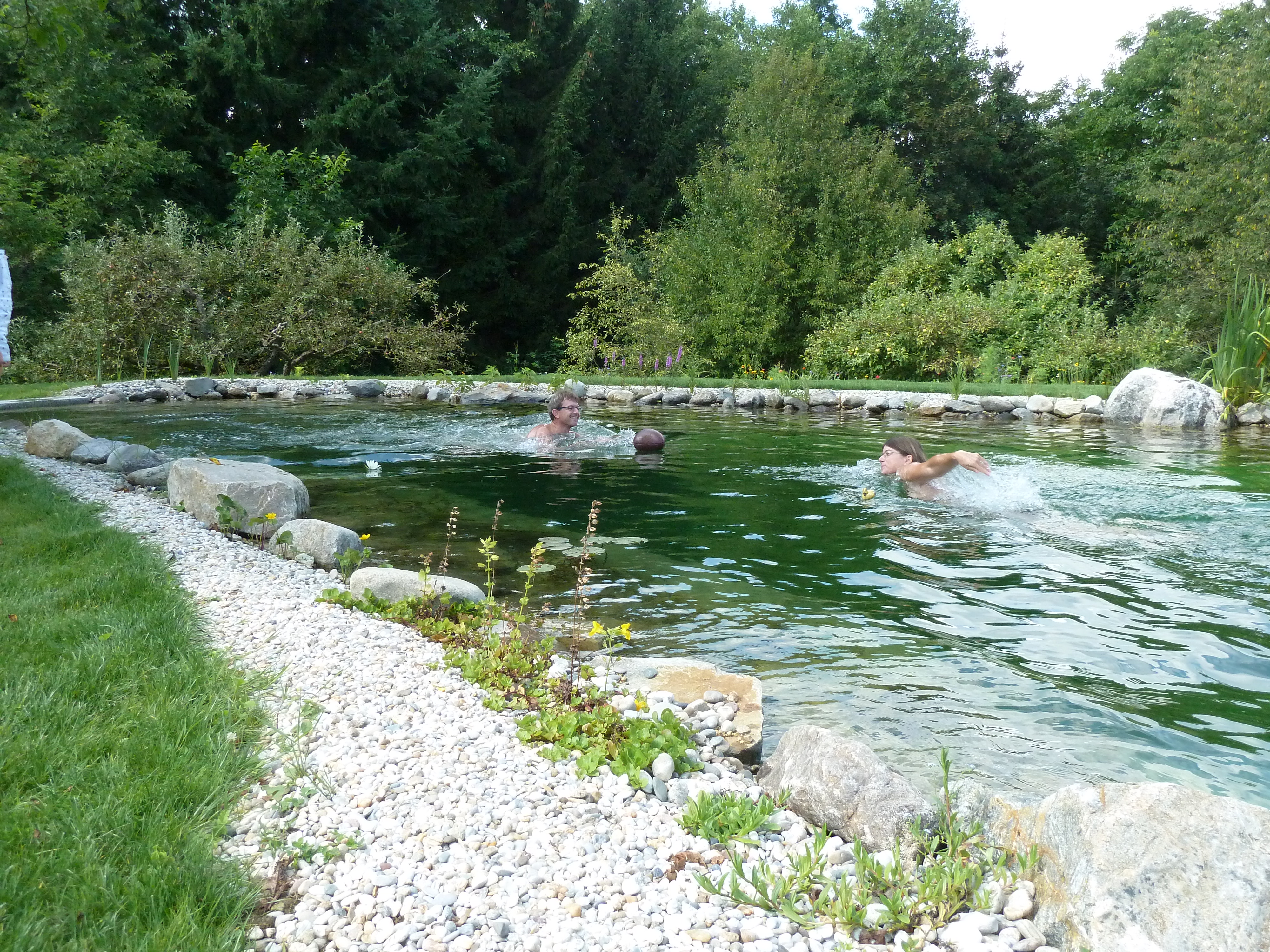 Am Nachmittag erwartete uns schon die erste Grillparty in der Feldstraße. Johannes grillte herrlich gut, es gab Grillkartoffeln, Mais, und zahlreiche selbstgemachte Saucen und Salate. ??? Mutige trauten sich in den großen, klaren Badeteich, Sportliche lernte das Ballspielen mit Laras Football ? und Gemütliche genossen die angenehme Gesellschaft bei Kaffee, Kuchen, Wein und Chips … ☕️?? Alles in allem war es ein herrlicher erster Urlaubstag mit vielen netten Leuten, die wir leider viel zu selten sehen.