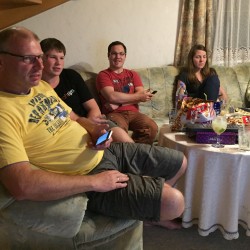 Am Montag in der Früh genossen wir dann ein herrliches, ausgedehntes Geburtstagsfrühstück ☕️ bevor es dann auf in die Steiermark zur Sommerparty ging. Dort hatten sich schon alle versammelt. Im ’neuen‘ Haus genossen wir dann Schnitzel und Backhenderl und danach selbstgemachte Kuchen. ?? Die Entscheidung, dass wir von der Terrasse hinein gewandert waren stellte sich dabei als einzig Richtige heraus, der Weltuntergangsregen musste draußen bleiben. ? Danach gab es noch eine kleine Fotoshow.