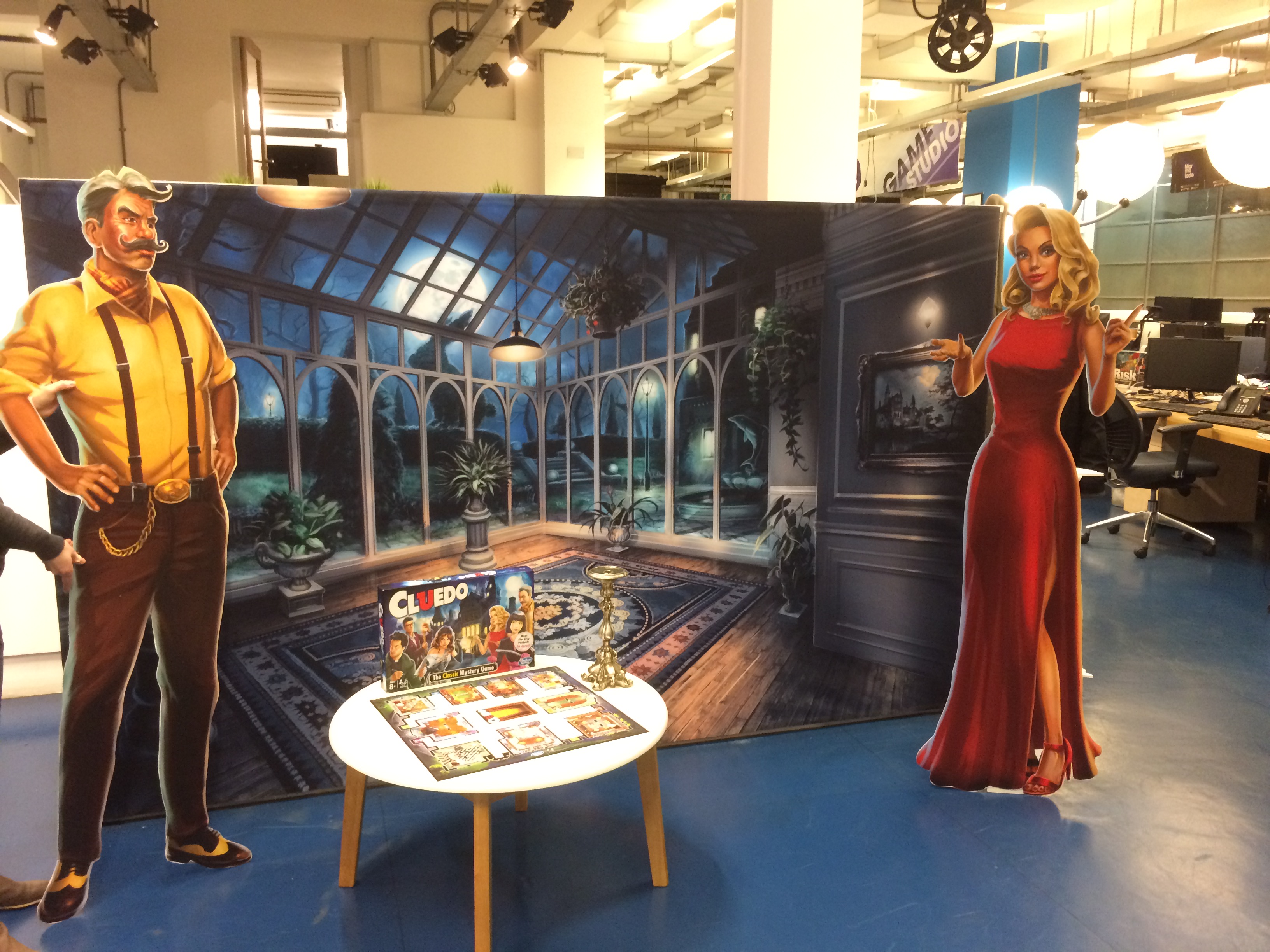 Wow! Mustard und Scarlett in Lebensgröße – ich würd gern Mr. Green treffen!! Gibt’s das Spiel jetzt auch schon in Europa?